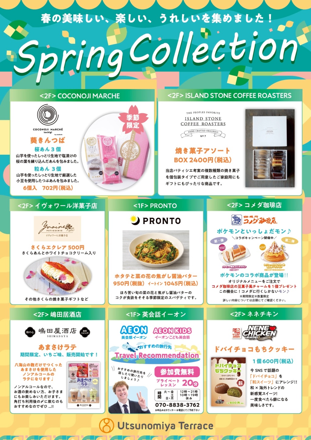 ウツノミヤテラスでは春をテーマに各ショップおすすめの「美味しい、楽しい、うれしい」を集めました。