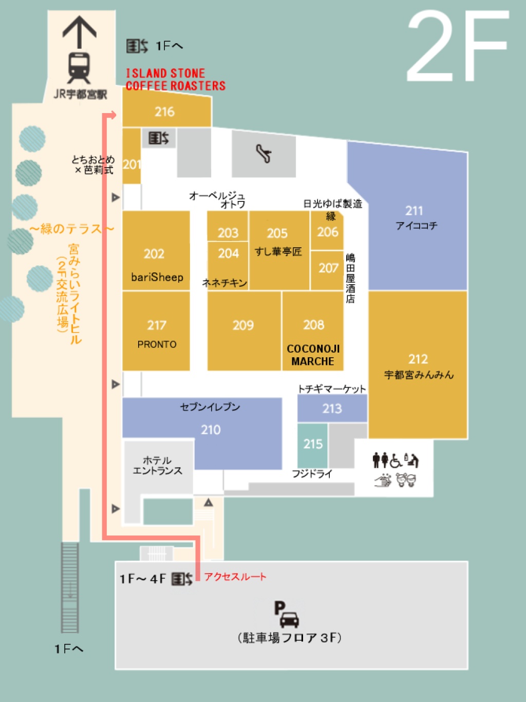栃木県宇都宮市宮みらい1番1号宇都宮駅東口デッキ直結駐車場480台収容可